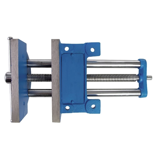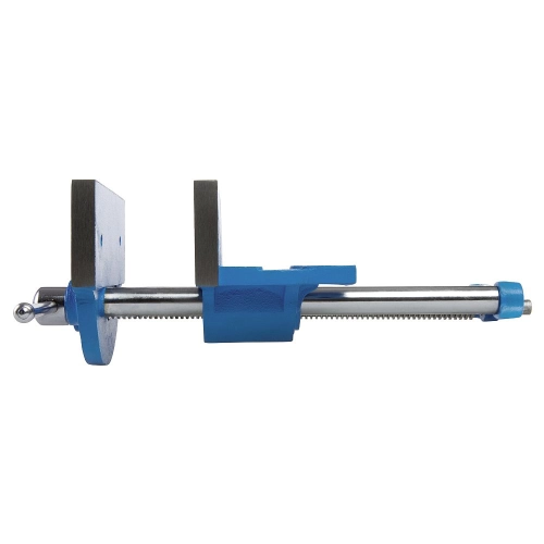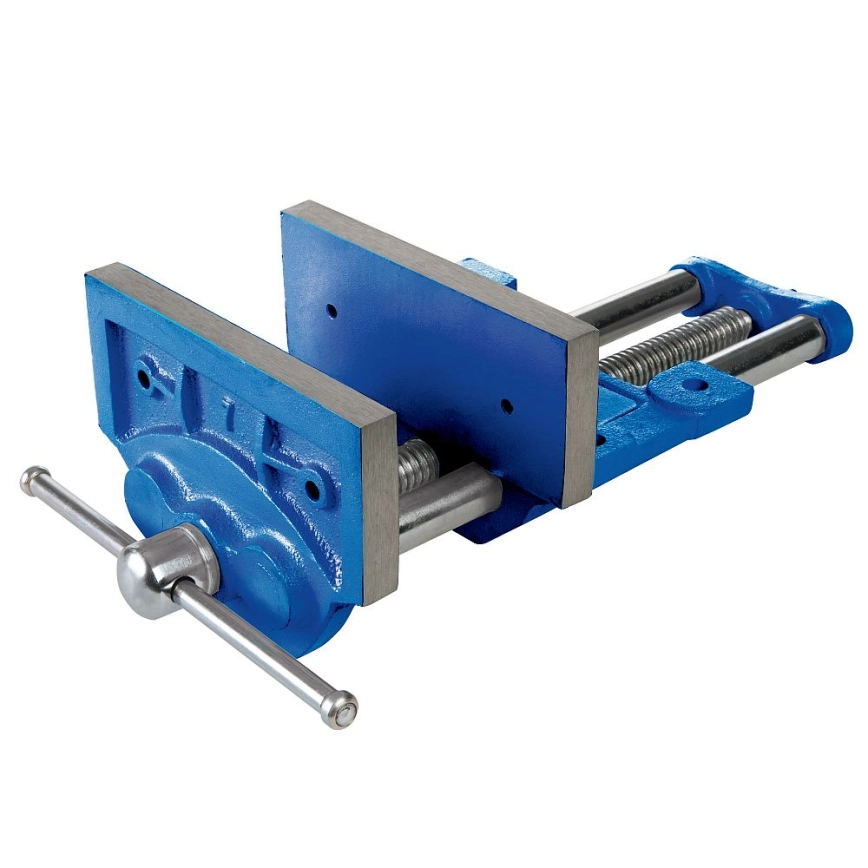 Litinový svěrák s velkými čelistmi 18 x 7,5 cm s rozsahem 180 mm pro všechny truhlářské práce, 2 ocelové kluzné tyče, masivní trapézový posuvový šroub.