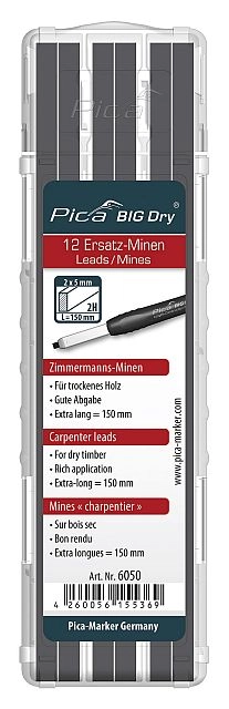 6050 Obdélníkové tuhy 2 × 5 mm, 150 mm dlouhé pro tesařské tužky PICA BIG Dry