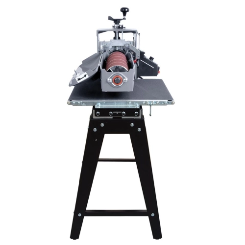 Přesnost podél šířky celého dílce je zaručena nejen tuhým vedením agregátu, ale také přesným paralelním srovnáním mezi válcem a posuvným pásem. Srovnání rovinnosti po celé šířce stroje lze jednoduše upravit pákou pod pásem posuvu podle šířky broušeného materiálu. Samostatný motor pásu posuvu je umístěn na zadní straně brusky a pás je tak spíše tažen než tlačen.