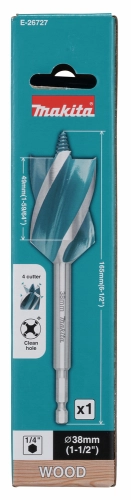 Vrták do dřeva čtyřbřitý šestihran 1/4" 38x165mmE-26727 MAKITA