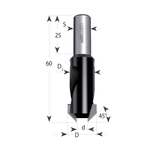 Záhlubník HW se stopkou - d=4 D12 a=45° S=8X25 pravotočivý CMT