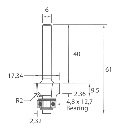 Zaoblovací fréza vydutá M138 se dvěma zuby z tvrdokovu je určená pro zaoblení hrany materiálu. Lze použít pouze v ručních frézkách.