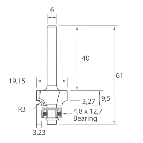Zaoblovací fréza vydutá M138 se dvěma zuby z tvrdokovu je určená pro zaoblení hrany materiálu. Lze použít pouze v ručních frézkách.