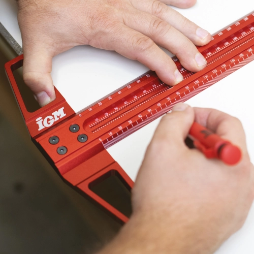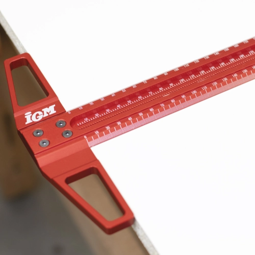 Přesný značící a rozměřovací IGM příložník 600 mm je vyroben z eloxovaného duralu. Stupnice je značena laserem po 1 mm. Okraje stupnice jsou zkosené směrem k pracovní ploše pro přesnější rýsování. Příložník je vyroben ze dvou dílů, a to základny a pravítka, které do sebe perfektně zapadají díky CNC obrobení dosedacích ploch. Jsou spojeny 4 pevnými šrouby. Příložník lze také použít jako pravítko po odmontování základny. Uprostřed pravítka jsou ve dvou řadách značící otvory pro rovnoběžné značení po 1 mm. Stačí vložit hrot tužky do otvoru a nakreslit dokonale rovnou čáru podél prkna.